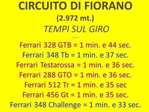 Fiorano Track Times Ferrari 80s/90s – what do you think? Posted on February 11, 2020 by challenger24 Talk about it here at the Challenge Board Thanks to Luca – grazie!